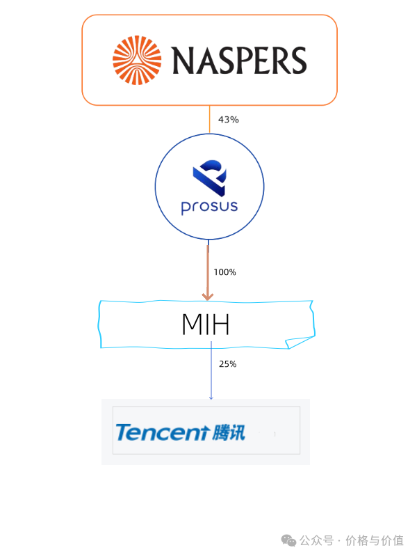 MIH由Naspers透过非全资附属公司Prosus控制,MIH为Prosus的全资附属公司。截止到2024年3月31日,腾讯控股、MIH、Prosus、Naspers的股权关系如下: