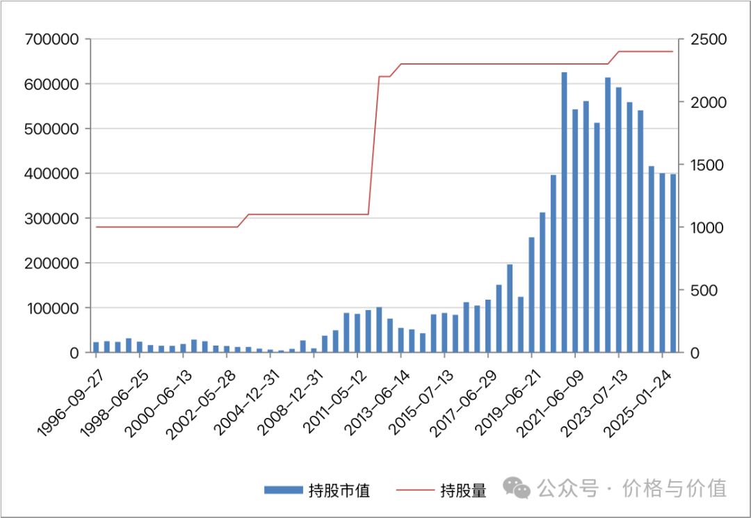 古井贡B于1996年6月12日在深交所上市,要早于古井贡酒。假设我们在1996年9月27日以5.62港元的收盘价买入1000股古井贡B,期间股息再投,持有至2025年5月12日的持股市值为400950港元,股息余额为7696.32港元,合计408646.32港元。