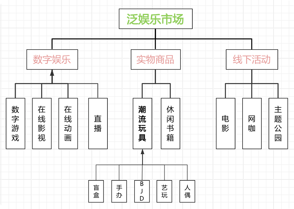 潮流玩具(Pop Toy,简称潮玩),又称艺术玩具 (Art Toy) 或设计师玩具 (Designer Toy),属于泛娱乐市场的一部分,是指巧妙融合了潮流文化及内容的玩具,涵盖盲盒、手办、BJD、艺术玩具、可动人偶和成人拼装玩具等产品种类。