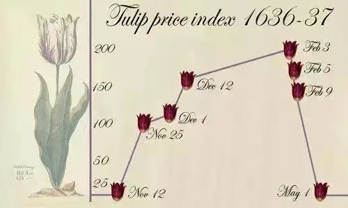 1636年,一棵价值三千荷兰盾的郁金香,可以交换八只肥猪、四只肥公牛、两吨奶油、一千磅乳酪、一个银制杯子、一包衣服、一张附有床垫的床外加一条船。