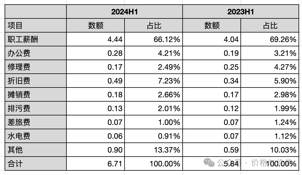 管理费用4.44亿元,同比增长9.90%,占营业总成本的5.03%。管理费用中最主要的是职工薪酬,占比66.12%。