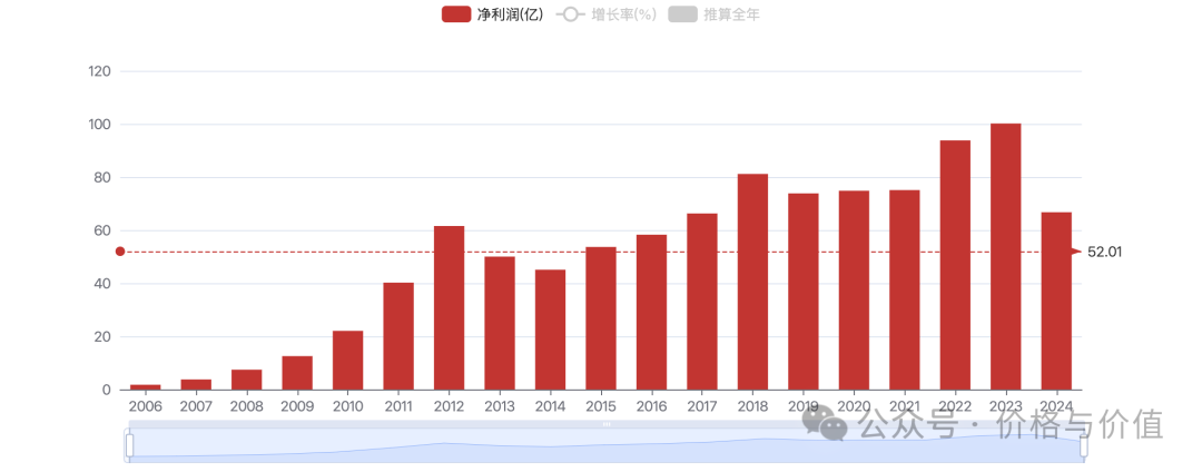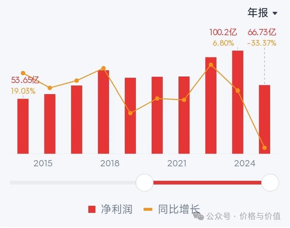 没有比较,就没有伤害——与其他头部酒企相比,洋河股份的净利润一夜回到十年前:在前三季度盈利85.79亿的情况下,第四季度直接亏损19.05亿,导致2024年的净利润与2017年基本持平。