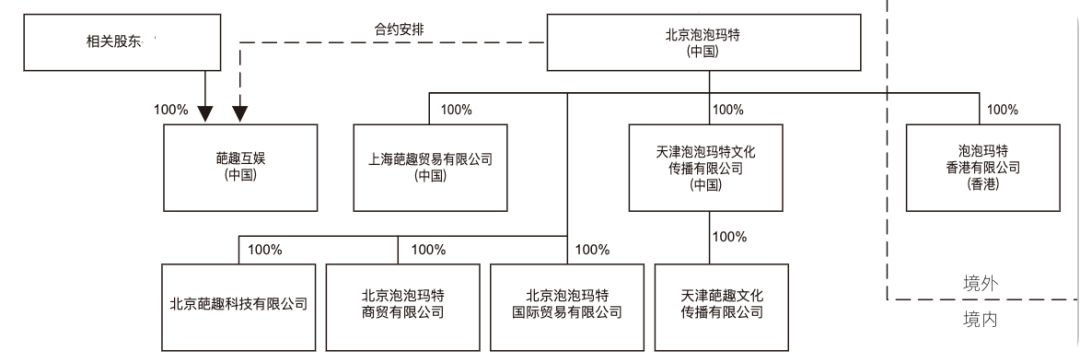 最后,根据境内相关法律法规,作为100%外资企业的北京泡泡玛特,不能直接控制拥有ICP许可证、ICB许可证的葩趣互娱。于是北京泡泡玛特通过设立VIE结构来实际控制葩趣互娱,确保线上平台经营牌照合法合规。