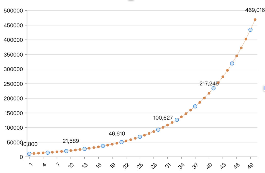 在复利的三要素中,时间具有独特属性:它既对所有人平等,又可以被不同人差异化利用。时间的魔法在于,它将线性增长转化为指数增长。在复利曲线的早期阶段,增长几乎难以察觉,如同缓坡爬升;而一旦越过某个临界点,曲线便开始以几乎垂直的姿态向上冲刺。