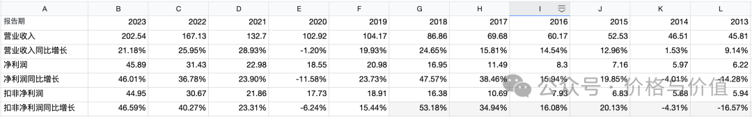 2013~2023年的净利润