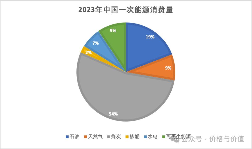 我国一次能源(自然界中以原有形式存在,未经加工转换的能源资源)供应主要来自煤炭、原油、水电和天然气,其中煤炭占据主导地位。根据《世界能源统计年鉴(2024|第73版)》数据显示,2023年,我国内地一次能源消费总量达到170.74艾焦,其中煤炭为91.94艾焦,比重达到53.85%。