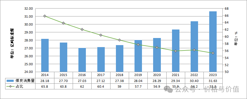 2021~2023年,我国原煤产量分别为41亿吨、45亿吨、47.1亿吨,年均增长4.5%。原煤占我国一次能源生产总量的比重始终保持在65%以上。