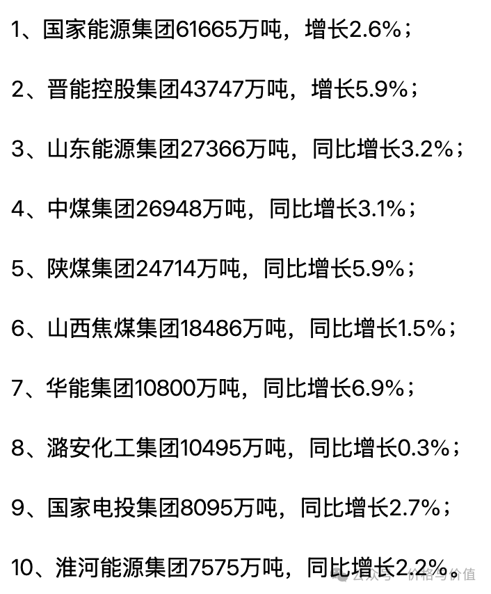 2023年,全国原煤产量超亿吨企业为8家,比上年增加1家,原煤产量合计22.3亿吨,较2022年增加0.7亿吨,增长3%;全国原煤产量超过5000万吨企业集团达到