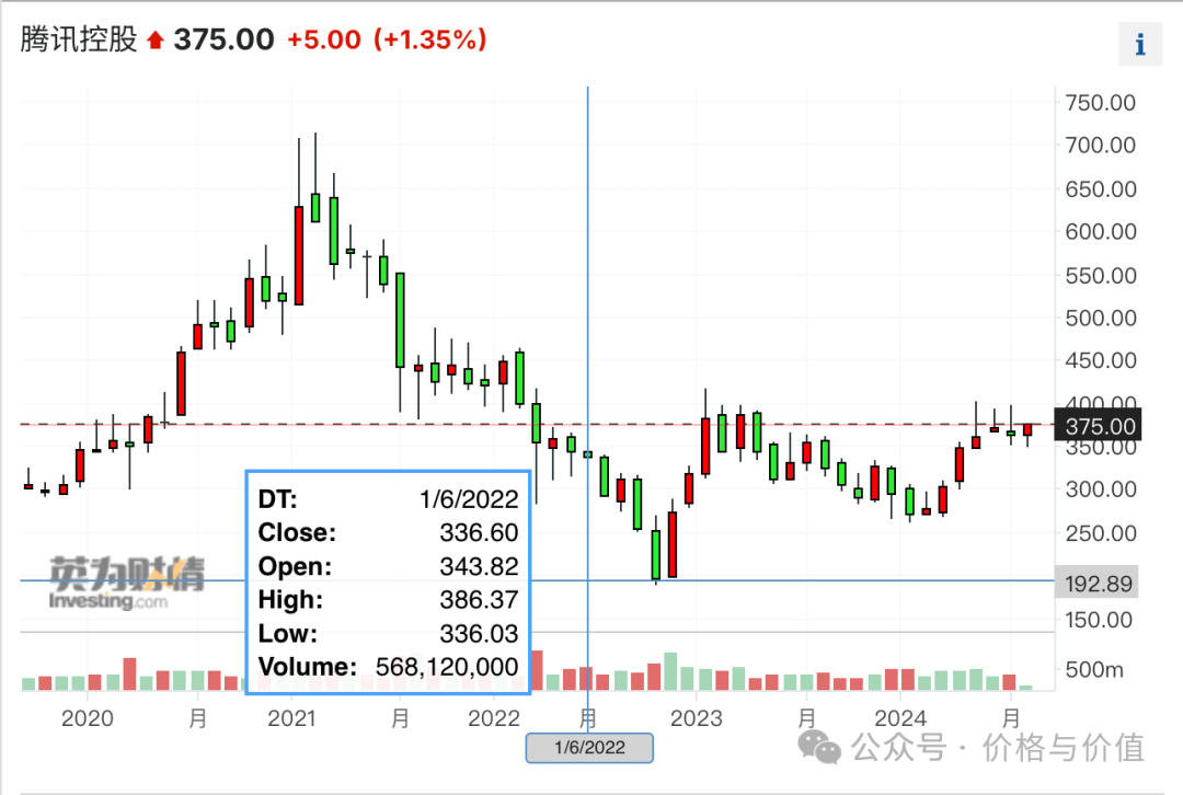消息一出,一片哗然。因为Prosus在2021年4月减持1.92亿股后,承诺至少未来三年将不会进一步减持股份。然而才过去仅仅一年,Prosus不仅要减持,还要持续性减持。使得腾讯控股本来已经腰斩的股价雪上加霜,并在随后的4个月内继续腰斩,跌至5年内最低点。