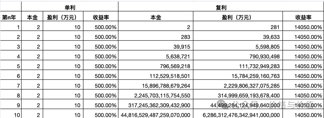 以复利方式计算,题主将在第4年买下A股市值TOP5的企业;第5年买下A股、港股、美股的全部企业还绰绰有余······按照这个速度,你很快就能会成为《赡养人类》中描述的终产者,整个星球的资产都属于你,包括山川、河流、海洋和空气。