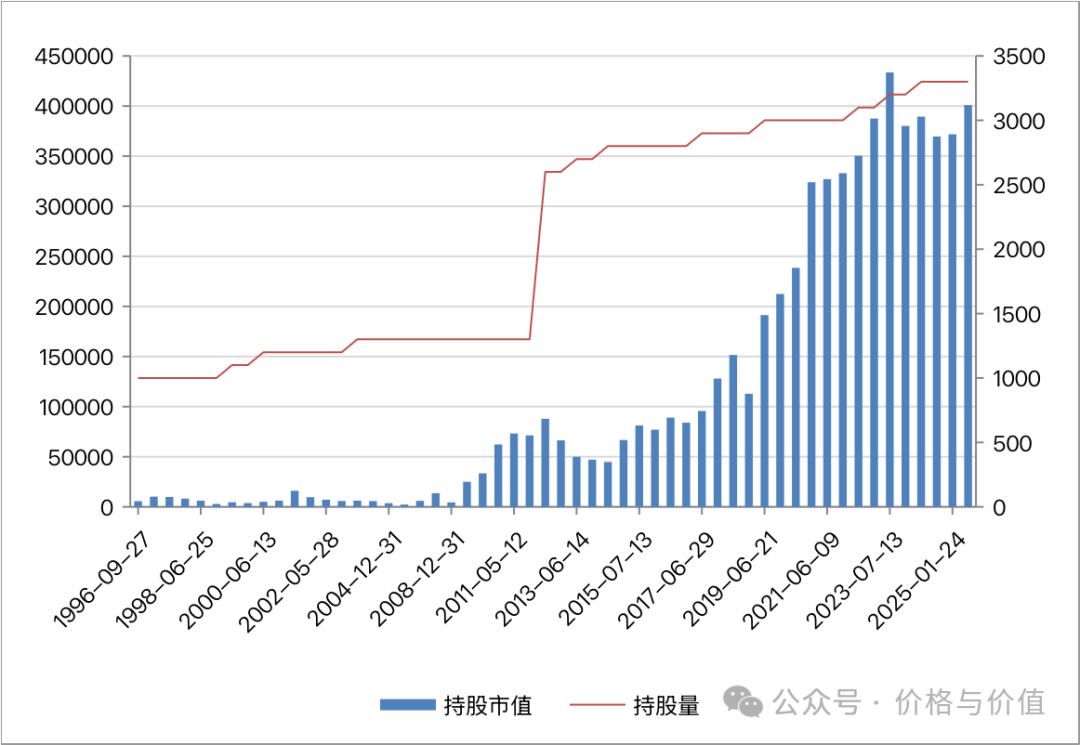 古井贡B于1996年6月12日在深交所上市,要早于古井贡酒。假设我们在1996年9月27日以5.62港元的收盘价买入1000股古井贡B,期间股息再投,持有至2025年5月12日的持股市值为400950港元,股息余额为7696.32港元,合计408646.32港元。