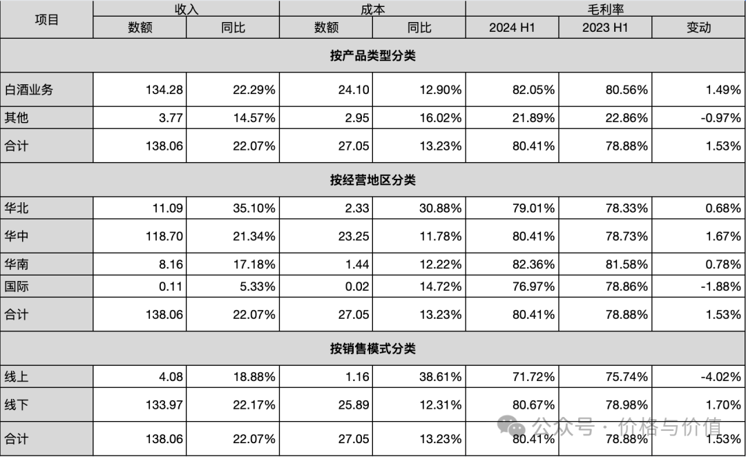 - 白酒:收入134.28亿元,占比