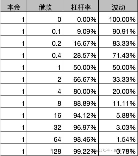 杠杆同样也放大亏损风险,低估亏损率。同样本金100元,借款200元买入,下跌10%时止损,则亏损30元,收益率为-30%。恐怖的是,如果未能止损或无法平仓,本金会清零。更恐怖的是,某些衍生品的价格可能变为负负值,不仅本金会清零,还需要额外的亏损。更更恐怖的是,无论是亏损多少,借款的利息需要照付。杠杆率、本金清零时波动幅度的部分对应关系如下: